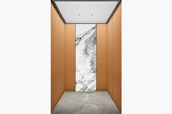 Tường bên và phía sau: tấm thép mỹ phẩm vân gỗ phun cát màu vàng sâm panh